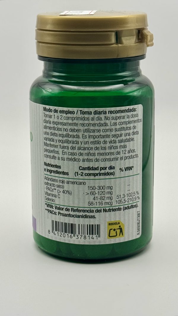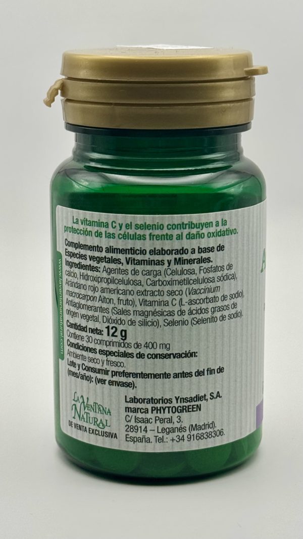 Arándano Rojo con Selenio y Vitamina C es un complemento alimenticio elaborado a base de especies vegetales, vitaminas y minerales. Su ingrediente principal es el extracto seco de arándano rojo americano (Vaccinium macrocarpon), una planta ampliamente utilizada por sus propiedades antioxidantes.